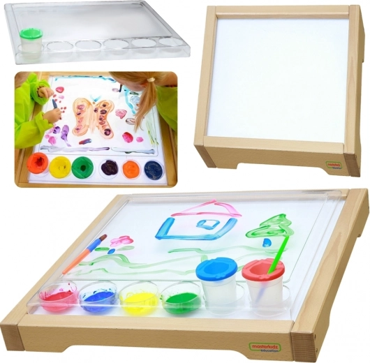 Drewniana sensoryczna rama Masterkidz z panelem LED została zaprojektowana, aby rozwijać kreatywność i wspierać naukę w systemie STEM. Podświetlane światła LED umożliwiają fascynujące efekty świetlne przez różne materiały, takie jak liście, papier czy piasek. W zestawie znajduje się przezroczysta tacka do malowania, która wzmacnia dziecięce dzieła sztuki.
