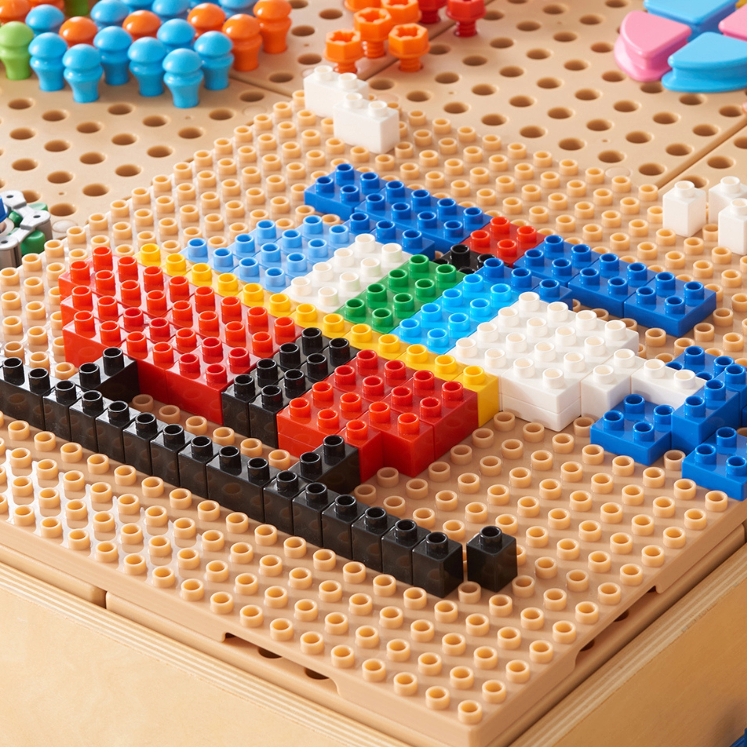 Świetne rozwiązanie dla szkół, przedszkoli, świetlic oraz domowych kącików kreatywnych. Montaż jest prosty – wsuwanie w panele STEM. Kompatybilny z popularnymi markami klocków.
