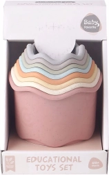 Ciesz się zabawą z kolorową wieżą do układania z kubeczków, która zajmie każde dziecko. Zestaw zawiera 8 szt. kubeczków z motywem fal, a ułożona wieża osiąga wysokość 40,8 cm.