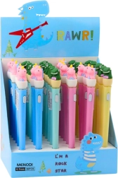 Górna część długopisu jest ozdobiona gumową figurką dinozaura, która pełni funkcję dekoracyjną i dodaje całości uroku. Dzięki skuwce końcówka pisząca jest dobrze chroniona przed wysychaniem, a wbudowany przycisk aktywuje efektowne podświetlenie LED, które włącza się przy każdym naciśnięciu.