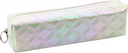 Eleganckie etui szkolne w perłowym odcieniu z tłoczonym wzorem rombów łączy minimalistyczny design z praktyczną formą. Jego subtelny połysk i klasyczny wygląd sprawiają, że to estetyczne, a zarazem funkcjonalne akcesorium codziennego użytku.