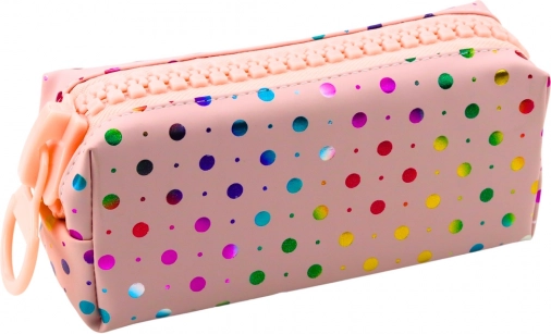 Elegancki szkolny piórnik w pastelowym różu z kolorowymi kropkami oferujący praktyczne rozwiązanie do przechowywania Twoich przyborów szkolnych. Jego nowoczesny design zachwyci dzieci i młodzież, które cenią oryginalność.