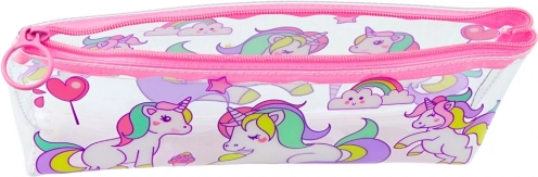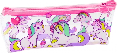 Przezroczysty piórnik z kolorowymi jednorożcami to uroczy i praktyczny dodatek dla każdego ucznia. Jego bajkowa grafika i pastelowe kolory przyciągają uwagę i świetnie pasują do szkolnej wyprawki.