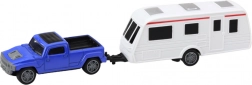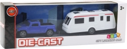Świetny zestaw, który zawiera niebieskie samochodzik z przyczepą, jest perfekcyjny dla każdego dziecka, które uwielbia samochody i wyobraźnię. Dzięki technologii die-cast samochodzik ma solidne metalowe nadwozie wyposażone w plastikowe detale.
