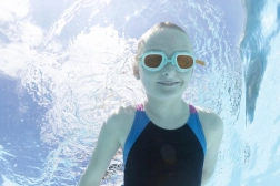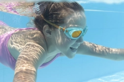 Soczewki gogli pływackich Aquanaut są zaprojektowane tak, aby zapewniać doskonałą widoczność pod wodą i chronić oczy przed chlorem i innymi drażniącymi substancjami.