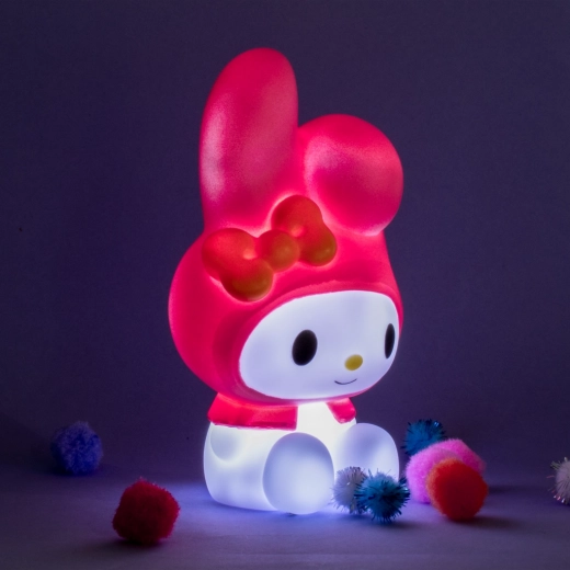 Duża lampa My Melody w licencjonowanym wydaniu to idealna dekoracja do Twojego pokoju. Łatwa w obsłudze i kompatybilna z trzema bateriami LR44, które są częścią zestawu.