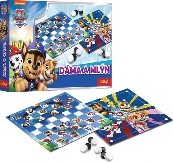 Odkryj klasyczną strategiczną zabawę w dziecięcej odsłonie: gra Warcaby i Młyn z motywami Psiego Patrolu oferuje 5 wariantów każdej gry, dwustronną planszę oraz wszystko, czego potrzeba na godziny mądrej rozrywki dla małych i dużych.