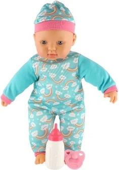 W opakowaniu znajdziesz buteleczkę i smoczek, dzięki którym dzieci mogą naśladować prawdziwą opiekę nad niemowlęciem. Lalka to idealny prezent wspierający rozwój empatii, małej motoryki i zabaw w odgrywanie ról.