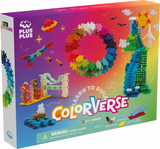 Odkryj świat niekończącej się zabawy z tym tęczowym super zestawem od Plus-Plus. Opakowanie zawiera 1000 elementów, które umożliwiają tworzenie różnych budowli.