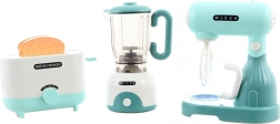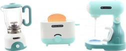 Zabawny zestaw kuchennych urządzeń dla małych kucharzy zawiera mikser, ubijak i toster na baterie. Zabawki oferują efekty świetlne i dźwiękowe oraz ruchome części, które wiernie naśladują prawdziwe urządzenia. Idealne do rozwijania wyobraźni i zabawy w odgrywanie ról dla dzieci od 3 lat.