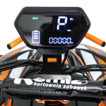 Bezczszotkowy silnik 800 W zasilany akumulatorem 48 V 20 Ah oferuje żwawą akselerację i zasięg na Twoje przygody. Automatyczna skrzynia biegów (przód/tył) z rewersem, uruchamianie na kluczyk oraz czytelny wyświetlacz (prędkościomierz, dzienny licznik przebiegu, wskaźnik naładowania) podnoszą komfort i bezpieczeństwo.
