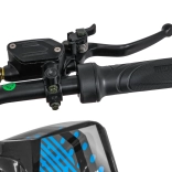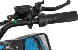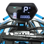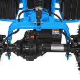 Bezpieczeństwo i kontrolę gwarantują hydrauliczne hamulce tarczowe na obu osiach oraz regulowane hydrauliczne amortyzatory z przodu i z tyłu. Pompowane opony z grubym bieżnikiem w rozmiarze 16x8.0-7 zapewniają doskonałą trakcję i stabilność w terenie. Czytelny wyświetlacz z prędkościomierzem, licznikiem przebiegu i wskaźnikiem poziomu naładowania daje pełną kontrolę nad jazdą, a oświetlenie z przednimi LED i światłem hamowania zwiększa widoczność.