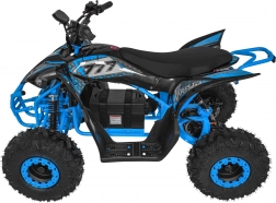 Elektryczny quad DESERT STORM LIFT zbudowano na mocnej, malowanej proszkowo ramie ze wzmocnionym tylnym wahadłem i wysokiej jakości elastycznymi tworzywami. Bezszczotkowy silnik 800 W w połączeniu z akumulatorem 48 V 20 Ah zapewnia płynne oddawanie mocy i efektywne zużycie energii. Prędkość maksymalna sięga 40 km/h, a automatyczna przekładnia z rewersem (przód/tył) upraszcza obsługę.