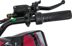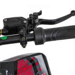 Bezpieczeństwo wspierają hydrauliczne hamulce tarczowe na obu osiach oraz oświetlenie LED z przełącznikiem i tylnym światłem stop. Regulowane hydrauliczne amortyzatory z przodu (2x) i z tyłu zwiększają komfort. Miękkie, wodoodporne siedzenie (61×29 cm) i wysoki prześwit o wysokości 19 cm ułatwiają jazdę po nierównościach.