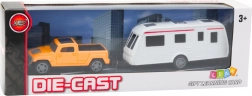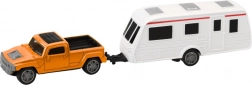 Nasz model wykonano w technologii die-cast, co oznacza, że nadwozie jest metalowe, a pozostałe elementy z wytrzymałego plastiku. Taki dobór materiałów zapewnia długą żywotność i estetykę zabawki. Przyczepę kempingową można łatwo odłączyć, co pozwala dzieciom tworzyć różne scenariusze zabawy – od wakacyjnych wypraw po rodzinne wycieczki.