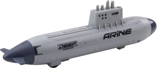 Szara łódź podwodna o długości 28 cm z napędem ciernym i funkcją wystrzeliwania torped do zabawnej i pouczającej zabawy.