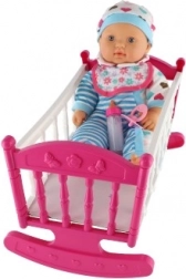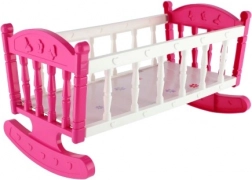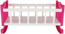 Różowo-biała kołyska z delikatnymi dekoracjami jest wykonana z trwałego plastiku, umożliwiająca bujanie i usypianie lalki. Idealna do rozwijania wyobraźni podczas zabawy.