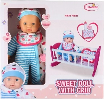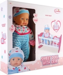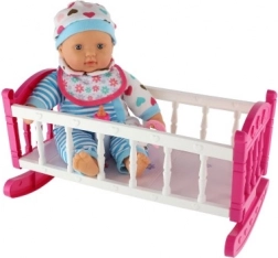 Tym razem prezentujemy wyjątkową lalkę z kołyską, która będzie doskonałym dodatkiem do świata zabaw każdego dziecka. Miękkie ciałko lalki umożliwia łatwą manipulację i przenoszenie, co dodaje realizmu ruchom podczas zabawy. Różowa kołyska z białymi paskami i motywem serduszek jest idealna do usypiania lalki, podczas gdy dodatki jak butelka i smoczek wprowadzają realistyczne doświadczenie opieki nad niemowlęciem.