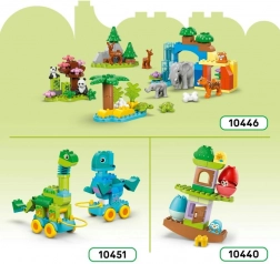 Ten barwny zestaw jest idealny dla przedszkolaków, które kochają budowanie i zwierzątka. Dzieci mają nieskończone możliwości – mogą budować sugerowane modele lub tworzyć własne konstrukcje. Dzięki łatwym do chwytania klockom DUPLO i solidnej bazie na kółkach zabawa jest intuicyjna i bezpieczna.