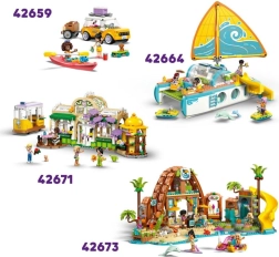 W zestawie znajduje się stanowisko DJ z obrotowym talerzem i mikrofonem, aby zabawa mogła trwać w najlepsze, a także krem do opalania, napój oraz lody dla jeszcze bardziej urozmaiconego odgrywania ról. Dzięki aplikacji LEGO Builder dzieci mogą przybliżać modele, obracać je i śledzić postępy budowy.