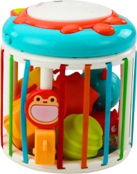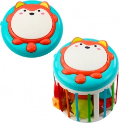 Interaktywna kostka wyposażona jest w funkcje takie jak sorter kształtów, elementy do naciskania, pręty do przepychania klocków oraz panel muzyczny z efektami świetlnymi i dźwiękowymi. Na górze znajduje się lisek z bębenkiem, który po naciśnięciu aktywuje dźwięk. Kostka odtwarza różnorodne dźwięki i melodie, wzbogacając percepcję słuchową dziecka i zachęcając je do aktywności.