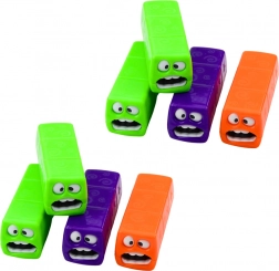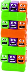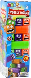 Wieża z 24 plastikowych klocków z wytłoczonymi buźkami uroczych robaczków w trzech wyrazistych kolorach: zielonym, pomarańczowym i fioletowym. Zabawna gra polegająca na układaniu wieży i wysuwaniu klocków od dołu tak, aby się nie zawaliła. Proste zasady dostarczają wiele emocji i śmiechu, także dla najmłodszych.