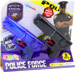 Ten zestaw zawiera dwa pistolety wodne, które są idealne do aktywnej i wesołej zabawy na świeżym powietrzu. Dzieci mogą udawać policjantów i bawić się w wodne potyczki w ogrodzie, na plaży lub placu zabaw. Wykonane z wysokiej jakości plastiku, odpornego na uszkodzenia mechaniczne i bezpiecznego w kontakcie z wodą.