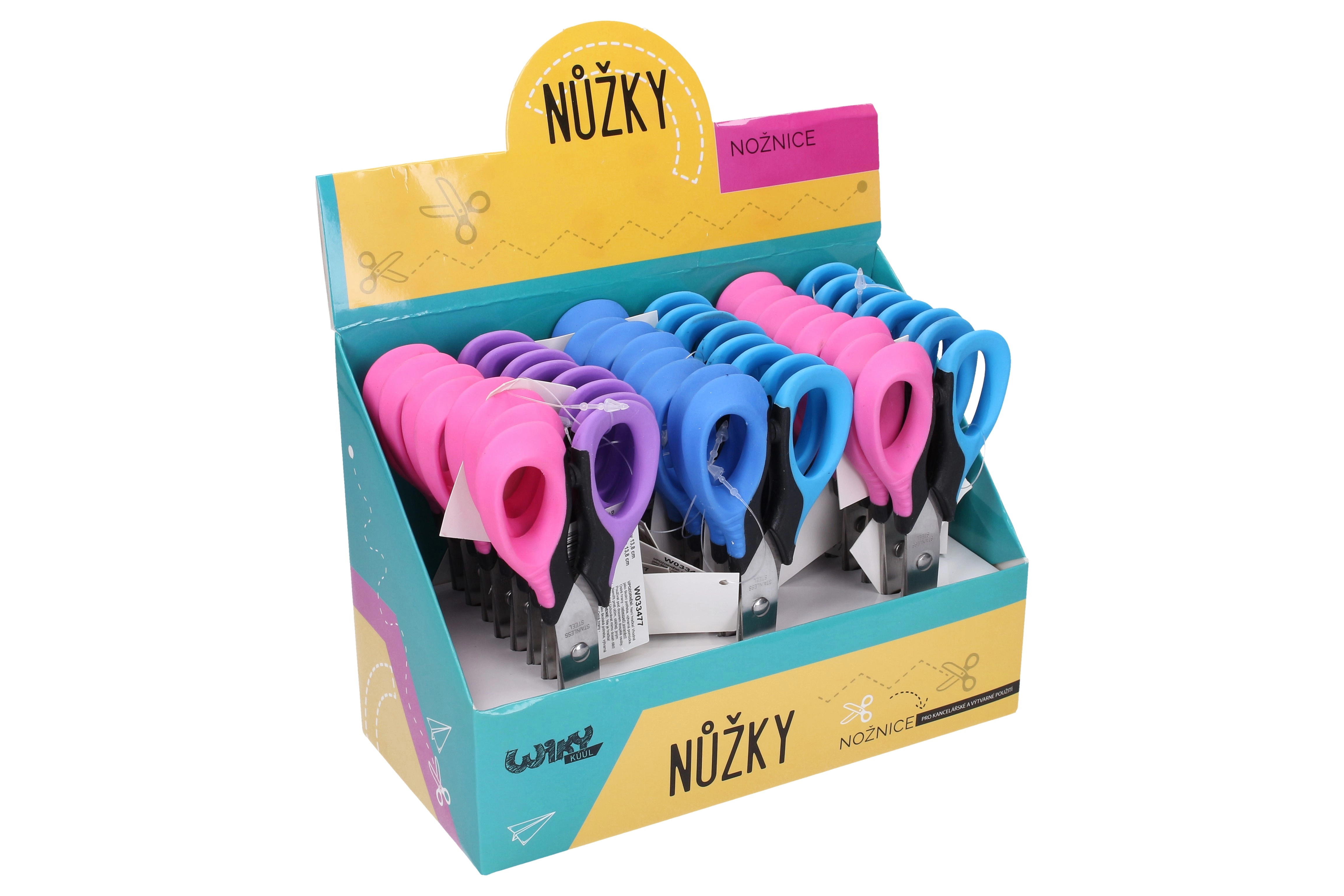 Oferowane w praktycznym display boxie zawierającym 24 sztuki, te nożyczki są doskonałym wyborem do szkół, biur lub do użytku domowego.