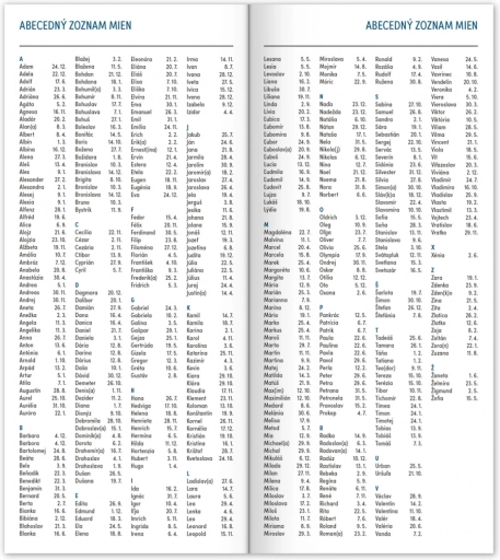 - Słowackie kalendarium z imieninami, świętami i dniami pamiętnymi