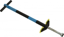 Skacząca tyczka wykonana jest z mocnej stalowej rurki, co zapewnia długotrwałe użytkowanie i bezpieczeństwo.