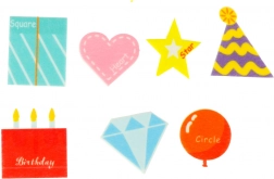 - Strona 3: Motyw urodzinowej imprezy z tematyką dino i dekoracjami do przyklejania jak balony, serca i tort.