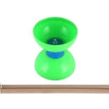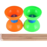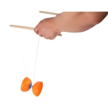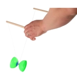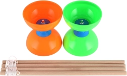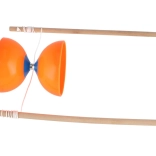 Solidne plastikowe miski wytrzymują uderzenia, a drewniane pałeczki zapewniają pewny chwyt i naturalne wyczucie przy sterowaniu diabolo.