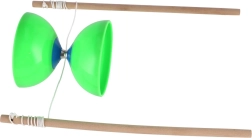 Duże diabolo z solidnymi plastikowymi miskami i drewnianymi pałeczkami zapewnia mnóstwo zabawy i trening motoryki. Dzięki szerokim miskom i stabilnej osi diabolo jest bardzo stabilne, dobrze trzyma prędkość i wybacza błędy – idealne do nauki i rozwijania trików.
