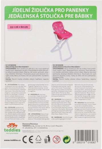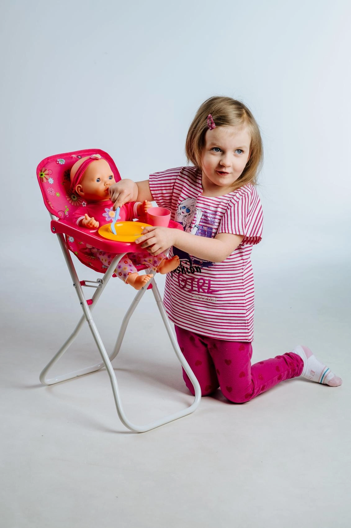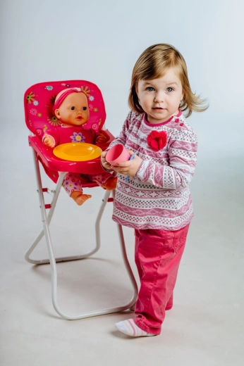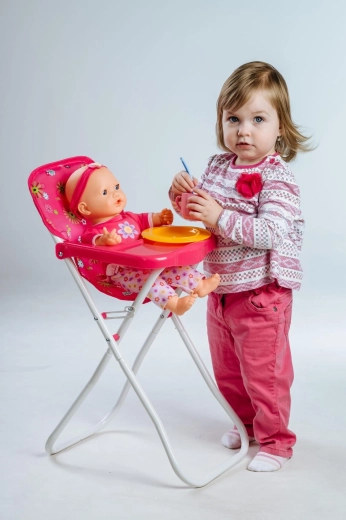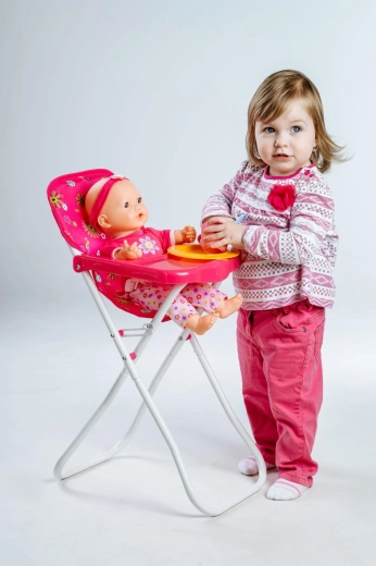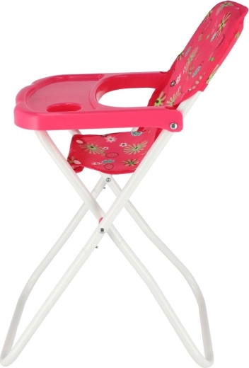 To wysokie krzesełko dla lalek ucieszy wszystkie małe opiekunki. Oferuje wygodne siedzisko z kwiatowym pokryciem, praktyczną plastikową tackę do karmienia oraz lekką, ale stabilną metalową konstrukcję. Dzięki kompaktowemu, składanemu wykonaniu łatwo je przenieść i przechować.