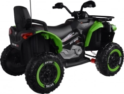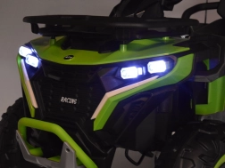 Quad napędzany jest przez 4 silniki 12V 25W i wyposażony w akumulator 12V 10Ah. Dodatkowo posiada efekty świetlne, co zwiększa atrakcyjność jazdy. Sterowanie jest proste dzięki pilotowi zdalnego sterowania, który umożliwia rodzicom kontrolę nad jazdą.