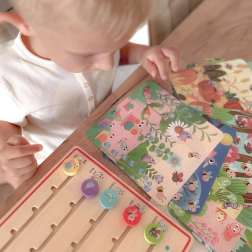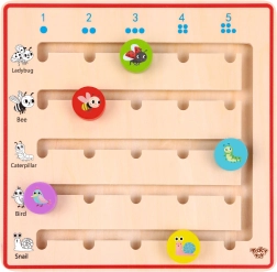 Drewniana gra od Tooky Toy pomaga dzieciom uczyć się liczyć w zabawny sposób. Dzięki leśnemu motywowi dzieci zanurzą się w świecie zwierzątek, takich jak biedronka, ptaszek, ślimak, gąsienica i pszczółka, które będą im towarzyszyć przez całą grę. Producent dba o wysokiej jakości i ekologiczne materiały, aby maksymalnie zwiększyć bezpieczeństwo dzieci i chronić środowisko naturalne.