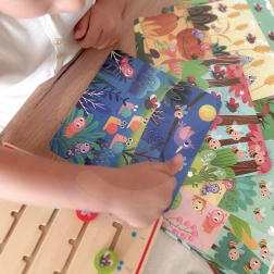Gra jest przeznaczona dla dzieci od 3 lat i zawiera drewnianą tabliczkę do oznaczania liczb oraz 20 kart z leśnymi motywami do liczenia zwierzątek, a na odwrocie znajdziesz odpowiedzi. Dzieci mogą bawić się samodzielnie, ćwiczyć liczenie i słownictwo po polsku i angielsku.