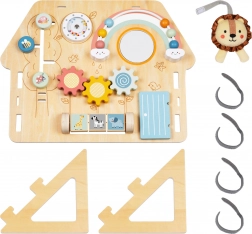 Drewniana tablica manipulacyjna w kształcie domku zapewnia dzieciom od 1. roku życia godziny odkrywania i zabawy. Wspiera małą motorykę, rozwój sensoryczny oraz koordynację oko–ręka dzięki szerokiej gamie aktywności: zębate kółka, elementy przesuwne, lusterko, koraliki na tęczy i obrotowe wałeczki. Wykonana z wysokiej jakości drewna i zaprojektowana tak, aby była bezpieczna dla najmłodszych.