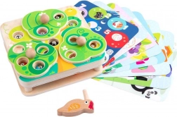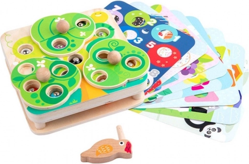 Pomysłowa drewniana magnetyczna gra od Tooky Toy łączy zabawę i naukę w jednym. Dzieci, korzystając z drewnianego ptaszka, łowią magnetyczne robaczki, obracają liście drzewa i realizują zadania na wymiennych tablicach. Gra rozwija motorykę małą, koordynację ręka–oko, rozpoznawanie kolorów, kształtów i liczb, a jednocześnie oferuje bezpieczne drewniane wykonanie z gładkimi krawędziami.