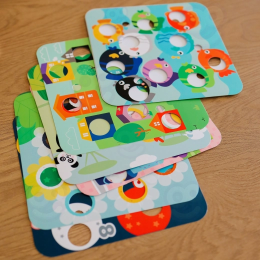 Kolorowe plansze z liczbami, kolorami, kształtami i zwierzątkami rozszerzają scenariusze zabawy. Wspierają wczesną umiejętność matematyczną oraz rozpoznawanie kolorów i kształtów.
