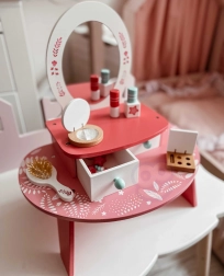 Odkryj świat piękna z tą drewnianą toaletką od Tooky Toy, idealną dla każdej małej księżniczki.