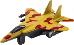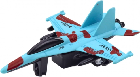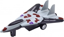 Myśliwiec odrzutowy wyposażony jest w mechanizm napędu ciernego – wystarczy naciągnąć go do tyłu i puścić, aby samolot poruszał się do przodu z dużą prędkością. Takie rozwiązanie nie tylko bawi, ale także rozwija zdolności motoryczne dziecka i uczy podstaw sił fizycznych.