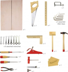 Drewniana walizka z narzędziami zawiera wszystko, czego młody majsterkowicz potrzebuje. Zawiera śrubokręty, piły, klucze, młotki i wiele innych narzędzi. Wykonana z wysokiej jakości materiałów i spełnia europejskie normy bezpieczeństwa.