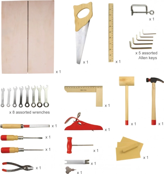 Podaruj swojemu dziecku radość tworzenia dzięki temu praktycznemu zestawowi narzędzi w walizce. Każdy element narzędzi jest starannie wykonany z wysokiej jakości drewna i metalu, aby wytrzymać odkrywcze dłonie małego majsterkowicza.