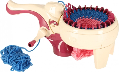 Maszyna dziewiarska z zestawem do dziergania z pięcioma kolorami włóczek do kreatywnego tworzenia.