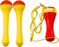 W zestawie znajduje się mikrofon z przewodem oraz dwie pałeczki perkusyjne, które umożliwiają dzieciom tworzenie własnych rytmów. Dzięki solidnej konstrukcji i zaokrąglonym krawędziom bębenek jest całkowicie bezpieczny dla dzieci.