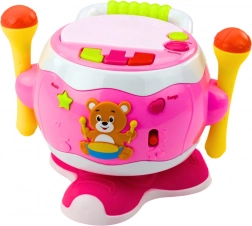 Różowy design z obrazkiem misia z przodu spodoba się każdej małej miłośniczce muzyki. Dzięki intensywnym kolorom i bezpiecznej konstrukcji bębenek to idealny wybór dla najmłodszych.