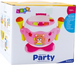 Muzyczny bębenek został zaprojektowany tak, by łączyć funkcje bębna, zabawki edukacyjnej oraz zestawu karaoke. Oferuje 8 różnych interaktywnych trybów, obejmujących dźwięki zwierząt, piosenki, quizy, rytmiczne melodie i opowieści. Kolorowy panel dotykowy rozświetla się w rytm dźwięków, co dodaje zabawie wyjątkowego uroku.