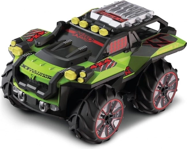 Ciesz się ekscytującą jazdą w każdym terenie z Nikko Vaporizr XT! Ten zdalnie sterowany samochód radzi sobie na lądzie, w błocie, na śniegu, a nawet w wodzie dzięki napędowi na cztery koła i amfibijnej konstrukcji.