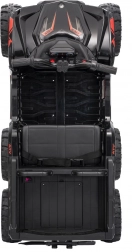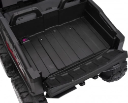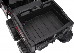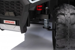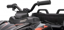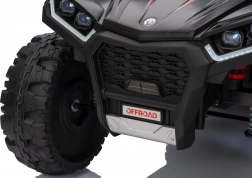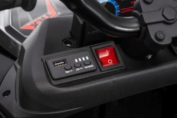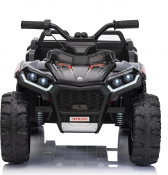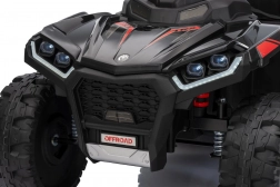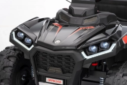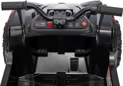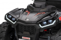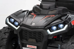 Bezpieczeństwo zapewniają pas ochronny i piankowe koła dla stabilnej i komfortowej jazdy. Czterokołowiec ma również reflektory LED i zintegrowany panel audio, zawierający odtwarzacz MP3, Bluetooth i wejście USB, co umożliwia słuchanie ulubionej muzyki podczas jazdy.